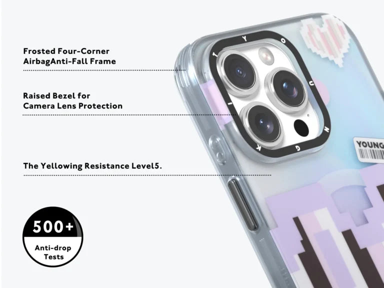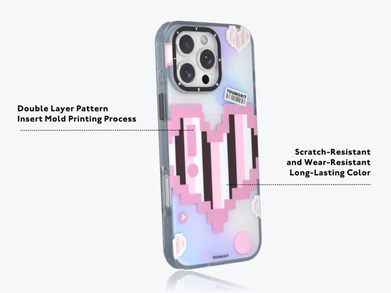 Combining nostalgia with modern style, the pixelated heart design changes color as you move, giving your device a dynamic, eye-catching effect. The playful retro vibe blends with cutting-edge style to capture hearts wherever you go.