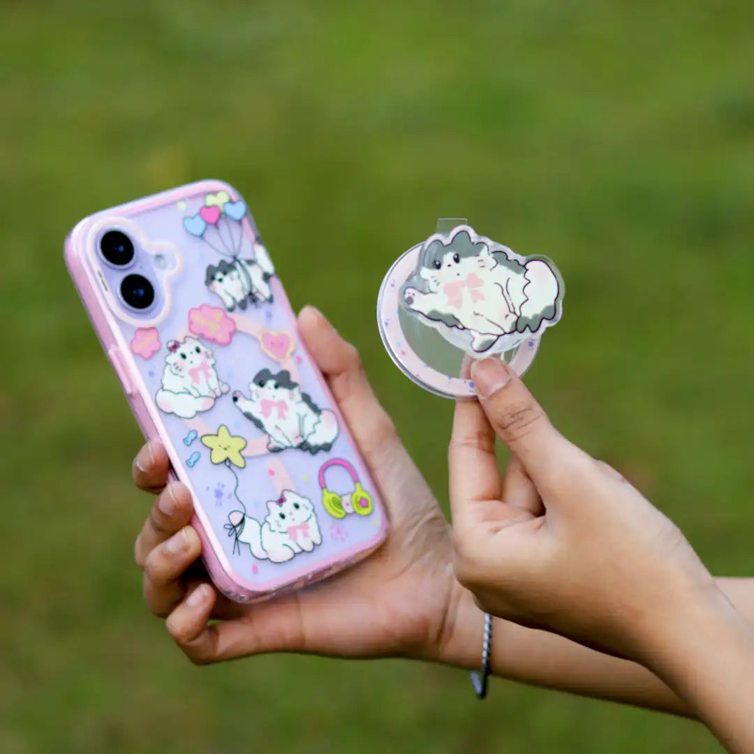 A premium phone grip and stand that adapts to your lifestyle—comfortable to hold, stable for hands-free viewing, and perfect for calls, reels, and streaming on the go.